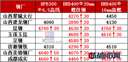 14日,國內(nèi)11家建筑鋼材生產(chǎn)企業(yè)上調(diào)出廠價20-60元/噸。