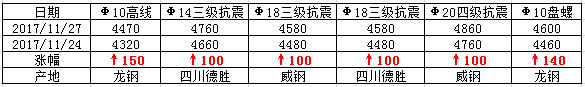 成都訊:27日,成都建筑鋼材價格上漲100-150元/噸,部分商家惜售明顯,具體如下: