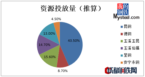 安寧永鋼復(fù)產(chǎn)后,其高線月產(chǎn)量預(yù)計(jì)在7萬噸左右,且前期主要以省內(nèi)消化為主,那么資源占比格局或?qū)⒀葑兂扇缦聢D2: