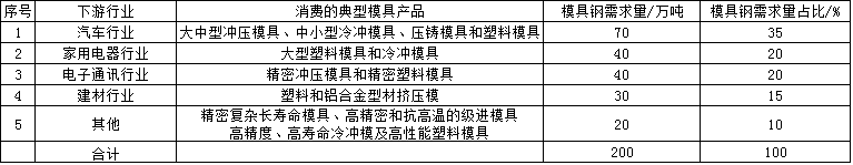 表3:模具鋼需求按行業(yè)劃分情況