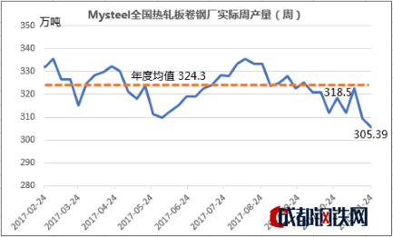圖3:全國(guó)熱卷鋼廠實(shí)際周產(chǎn)量 數(shù)據(jù)來(lái)源:鋼聯(lián)數(shù)據(jù)庫(kù)