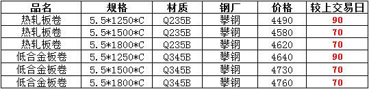 成都訊:5日成都市場熱軋價格繼續(xù)上漲,商家報價較上一交易日上漲70-90元/噸,具體如下: