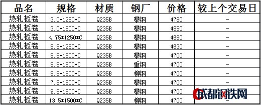 昆明訊:18日昆明市場熱軋板卷價(jià)格平穩(wěn)運(yùn)行,具體如下: