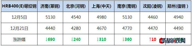 山東建材市場(chǎng)價(jià)格近期頹勢(shì)難改,領(lǐng)跌全國(guó),自12月5日以來半個(gè)月時(shí)間濟(jì)南地區(qū)建筑鋼材價(jià)格跌幅達(dá)到690元/噸,本周跌幅達(dá)到190元/噸。目前市場(chǎng)價(jià)格已經(jīng)明顯低于南方大部分市場(chǎng)價(jià)格。
