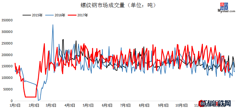 圖二:螺紋鋼市場(chǎng)成交量