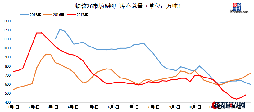 圖三:螺紋鋼廠&市場(chǎng)庫(kù)存總量
