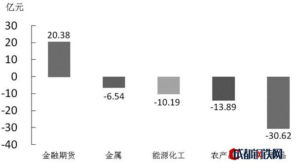 商品期貨成交額大幅減少,期貨市場成交活躍度下降。資金流出金屬和農(nóng)產(chǎn)品板塊,流入能化板塊,商品期貨資金總計流出金額約13.47億元。股指期貨上漲,成交活躍度持平。從盤面上看,有色品種走勢分化,錫、銅分別上漲2.06%、0.78%,鋁下跌1.08%;黑色系螺紋、熱卷與雙焦小幅反彈,鐵礦石跌幅超3%;農(nóng)產(chǎn)品板塊豆二、雞蛋收跌,其余上漲;能化品種普漲,L、PTA等多品種漲幅逾1%。股指市場資金流入約6.54億元,振蕩運行。