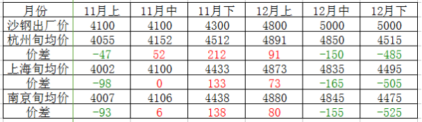 沙鋼均價(jià)大約在4475元/噸左右,而沙鋼上旬指導(dǎo)價(jià)為5000元/噸,旬內(nèi)具體情況如下圖所示。