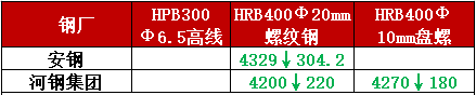 29日,國內(nèi)2家建筑鋼材生產(chǎn)企業(yè)下調(diào)出廠價。其中,河鋼集團下調(diào)2018年1月上旬建材價格120-220元/噸。