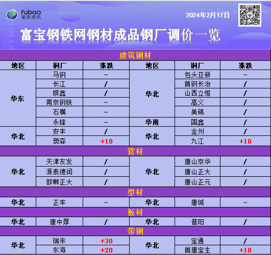 鋼鐵資訊2月17日消息:2024-02-17創(chuàng)大鋼鐵資訊