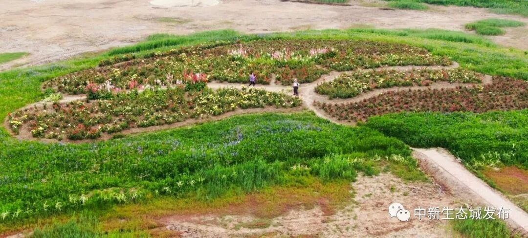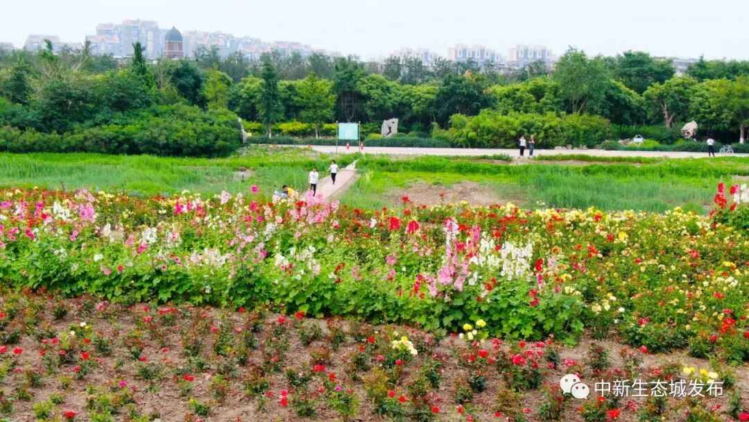 在剛剛改造完成的生態(tài)城永定洲公園濕地里,一片花海已經(jīng)初見規(guī)模,淡紫色的藍(lán)薊、淺粉的麥藍(lán)菜、嫩黃的月季、大紅的蜀葵,都在微風(fēng)中搖曳起舞,點綴著盛夏綠色的“底色”,也讓城市更有“野趣”。