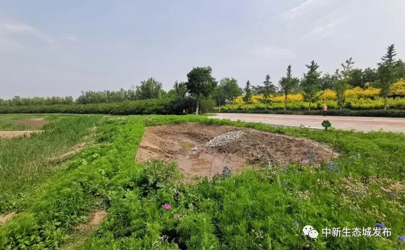 濕地前的這片空地被稱為“前置塘”,別看不美觀,卻是凈化雨水的重要場所。所有雨水最終都將匯聚在2萬平方米的濕地里,成為花海、蘆葦叢、植被等植物的景觀用水,為它們的生命提供必要的水分。