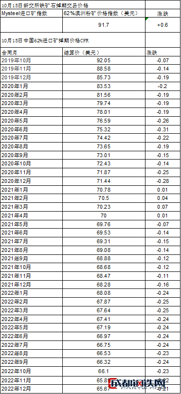 10月15日新交所鐵礦石掉期交易價(jià)格