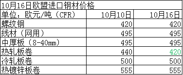 10月16日歐盟進口鋼材價格