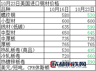 10月23日美國(guó)進(jìn)口鋼材價(jià)格