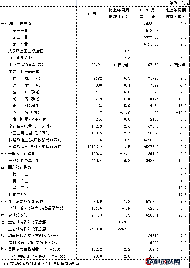 10月28日219年山西省主要經(jīng)濟指標完成情況