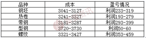 部分品種利潤空間: