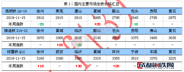 生鐵周報:供需博弈 生鐵漲跌互現(xiàn)(11.11-11.15)