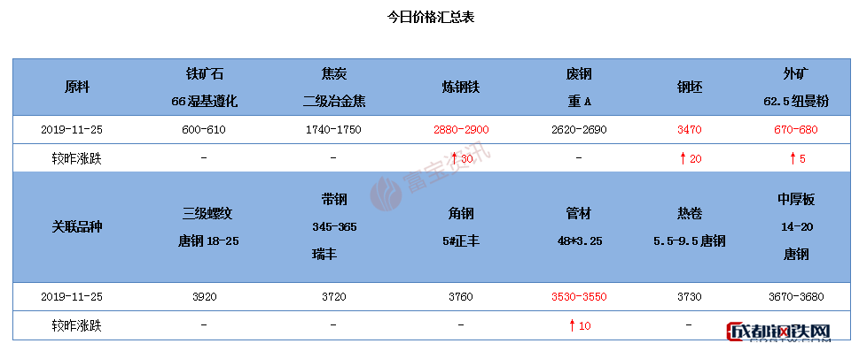 【唐山鋼市綜述】25日鋼市上行。期螺開盤拉升,現(xiàn)貨市場亦受提振,今成品漲20-40均有,交投尚可。消息面,受冷空氣影響,11月24日12時起全市解除重污染天氣Ⅱ級應急響應,鋼廠陸續(xù)復產(chǎn),坯料階段性需求釋放,市價再獲支撐,料近高位盤整。