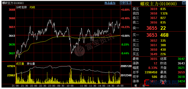 滬螺01收3655,漲12漲幅0.33%。盤間探底回升,最高3659,最低3618,日K線收