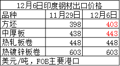 12月6日印度鋼材出口價(jià)格