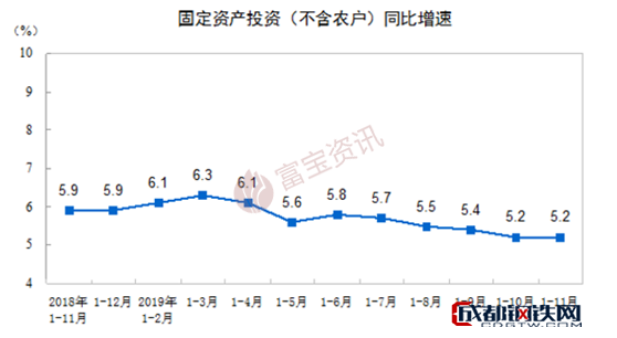 16日最新數(shù)據(jù)顯示,2019年1-11月份,全國固定資產(chǎn)投資(不含農(nóng)戶)533718 億元,同比增長5.2%,增速與1-10月份持平。從環(huán)比速度看,11月份固定資產(chǎn)投資(不含農(nóng)戶)增長0.42%。其中,民間固定資產(chǎn)投資303786億元,同比增長4.5%,增速比1-10月份加快0.1個百分點。