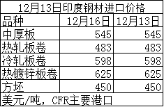12月13日印度鋼材出口價格