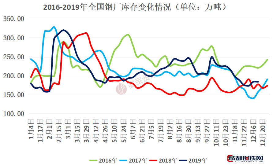 圖4:2016-2019年鋼廠庫(kù)存對(duì)比圖