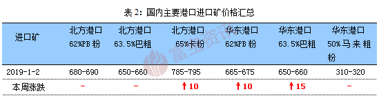 天津港58%楊迪575-585元/噸、PB680-690元/噸、63%巴粗650-660元/噸,