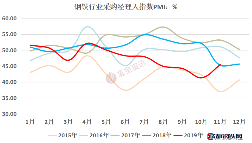 1.11月鋼鐵業(yè)PMI指數(shù)為45.40%,同比上升0.20%,環(huán)比10月上升4.10%,是2019年5月以來該指標(biāo)逐月連續(xù)下行后的首次觸底回升。