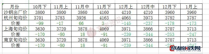 主要市場三大螺旬均價與沙鋼出廠價對比表