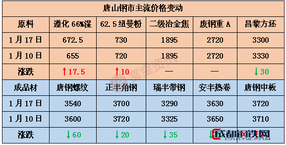 價(jià)格 唐山全市啟動(dòng)重污染天氣Ⅱ級(jí)應(yīng)急響應(yīng),下游軋鋼廠相繼停產(chǎn)后,鋼坯需求進(jìn)一步減少,直發(fā)成交表現(xiàn)一般,倉(cāng)儲(chǔ)現(xiàn)貨報(bào)3410元含稅左右,臨近新春,市場(chǎng)交投有限,黑色系期螺持紅震蕩,商家保持觀望心態(tài),唐山主流鋼廠鋼坯執(zhí)行春節(jié)鎖價(jià)政策3300元至1月30日。本周鋼市變化情況如下表: