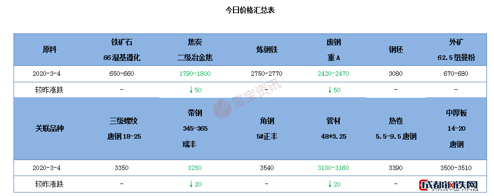 【唐山鋼市綜述】4日鋼市理性回調(diào),商家出貨為主,今成品跌10-20,交投冷清。隨著疫情逐漸得到控制,預(yù)計3月中旬下游終端企業(yè)復(fù)產(chǎn)率能達(dá)到相對較正常水平,據(jù)此推算,施工方在采取趕工措施前仍有補(bǔ)庫需求,料近市價低位震蕩。| 品種 | 今日行情 | 短期預(yù)測 |