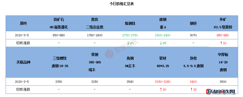 | 鋼坯 | 今早遷安主流鋼廠鋼坯漲價(jià)20元,鋼坯直發(fā)成交表現(xiàn)尚可,倉(cāng)儲(chǔ)現(xiàn)貨主流報(bào)3180元含稅,高價(jià)報(bào)3200元含稅,市場(chǎng)收貨價(jià)3170元含稅,黑色系期螺盤中持紅震蕩,商家盼漲情緒濃烈,成材方面價(jià)格主穩(wěn)個(gè)漲,成交多集中在低位,市場(chǎng)交投有限。 | 穩(wěn)或漲20 |