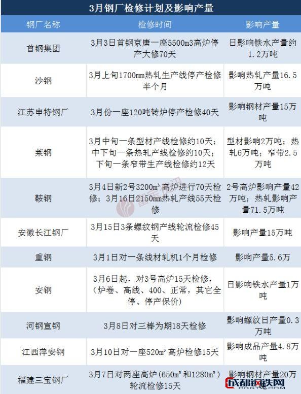 本月鋼廠檢修情況