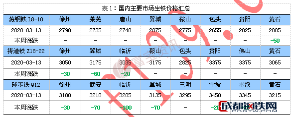 生鐵周報:鐵廠成交不一 走勢略有分歧(3.9-3.13)