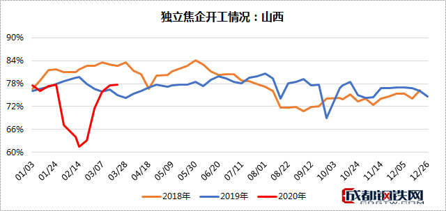 本周山西地區(qū)焦企開工繼續(xù)呈上升趨勢,在焦炭還有少許利潤的情況下焦企生產(chǎn)發(fā)貨積極性高,焦企開工良好,較上周小幅增加,下游鋼廠多維持前期采購狀態(tài),需求較穩(wěn)定,近期港口貿(mào)易商情緒好轉(zhuǎn),集港量增加,本周焦炭庫存有所下降。