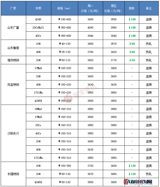 方坯集體跳水下行,本周除