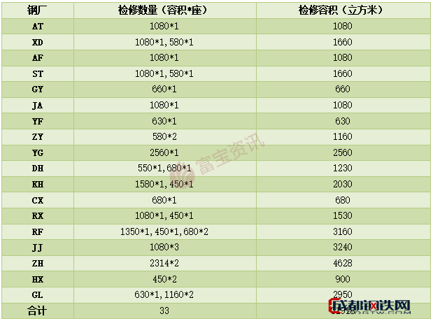 唐山鋼廠部分高爐檢修33座,開工率75.18%。