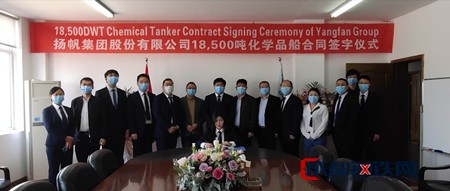 2020年4月9日,揚(yáng)帆集團(tuán)與一家國(guó)外船東簽署一艘18500DWT化學(xué)品船建造合同。該船型長(zhǎng)164.34米、寬23米、設(shè)計(jì)吃水9.55米。