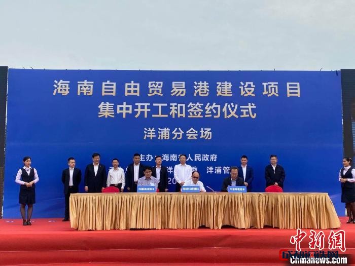 圖為海南自由貿(mào)易港建設(shè)集中開工和簽約儀式洋浦分會場