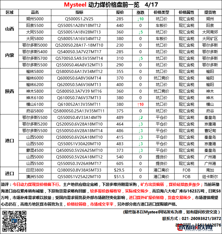 17日動力煤現(xiàn)貨交易價盤前一覽