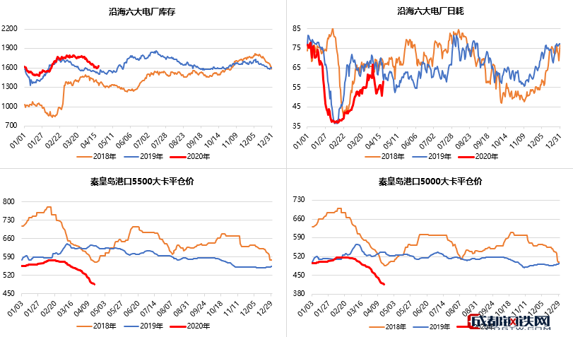 下游方面,當(dāng)前沿海電廠庫存偏高位震蕩,日耗窄幅變化,重點(diǎn)電廠庫存止降趨穩(wěn),傳統(tǒng)消費(fèi)淡季之下用煤需求難言樂觀,繼續(xù)等待水泥、化工等非電終端需求恢復(fù)節(jié)奏。4月15日全國重點(diǎn)電廠存煤7253萬噸,日供349萬噸,日耗333萬噸,可用天數(shù)21天;4月21日沿海六大電廠(增加華電)庫存1615.63萬噸,日耗55.91萬噸,可用天數(shù)28.89天。