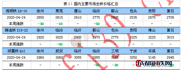 生鐵周報(bào):需求不見好轉(zhuǎn) 生鐵跌勢難改(4.20-4.24)