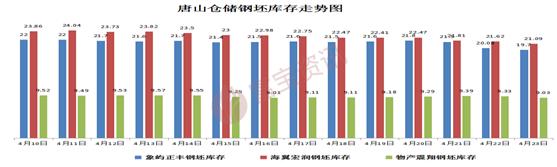 【鋼坯庫存】4月23日唐山鋼坯庫存總計(jì)49.82,較上周減少3.67,象嶼正豐19.7,海翼宏潤21.09,物產(chǎn)震翔庫9.03(萬噸)。
