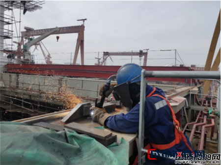 山海關(guān)基地“五一”假期為追趕項(xiàng)目進(jìn)度,員工們放棄假期休息實(shí)現(xiàn)了“專項(xiàng)勞動(dòng)競(jìng)賽加速周”,圍繞8.2萬(wàn)噸散貨船12號(hào)船項(xiàng)目試航后遺留項(xiàng)消除、13號(hào)船節(jié)后試航節(jié)點(diǎn)、14號(hào)船六月初試航節(jié)點(diǎn)的目標(biāo)全面推進(jìn)。