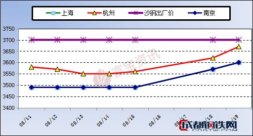 三、沙鋼上期出廠價與江浙滬區(qū)內(nèi)主導(dǎo)城市價格對比